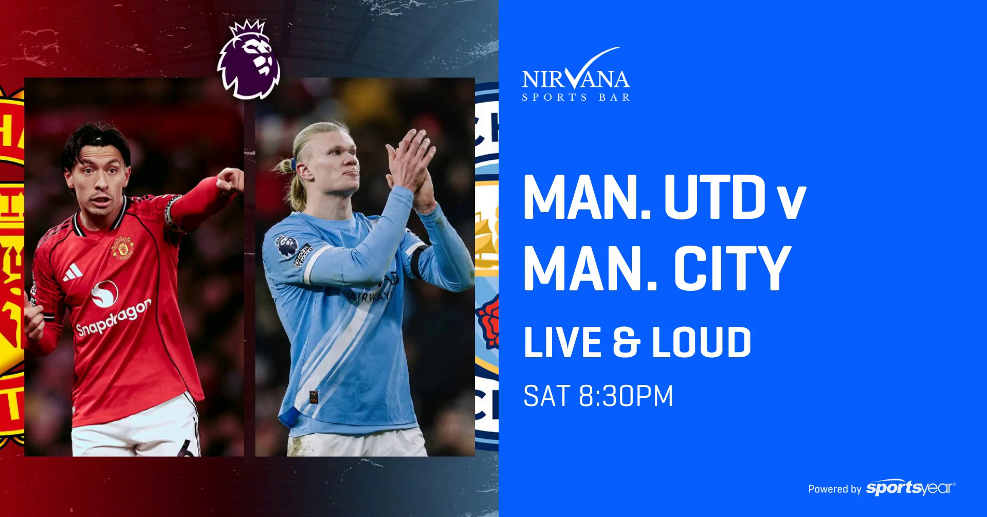 The Manchester Derby is here! It’s Red vs. Blue in one of football’s biggest rivalries as United host City. Catch every goal and heart-stopping moment LIVE & LOUD this Saturday from 8:30 PM. Join the crowd at Nirvana Sports Bar for the best atmosphere and coldest drinks in Seminyak!
